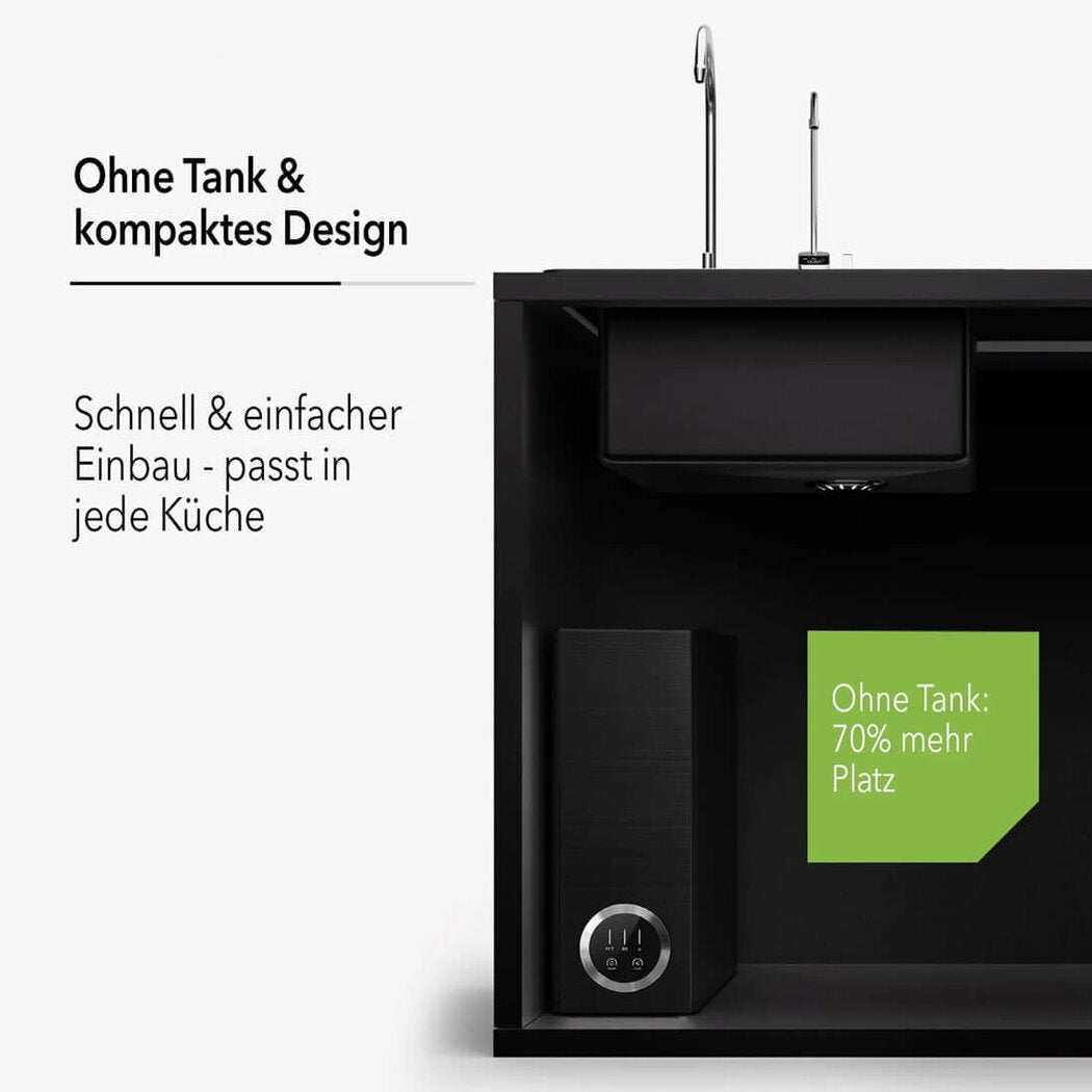 - Kompakt & leistungsstark – bis zu 2,6 l/min Reinwasser ohne Tank, ideal für Küche, Büro oder Aquaristik