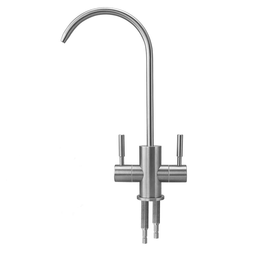 - Zwei Wasserarten aus einem System – getrennte Entnahme von Osmose- & Filterwasser über den Edelstahl-Zwei-Wege-Wasserhahn