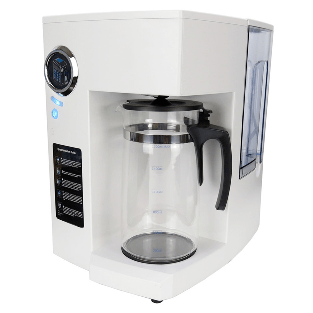 Diese Glaskaraffe ist eine Ersatzkanne oder eine praktische Ergänzung für die Auftisch-Umkehrosmoseanlagen der Modelle Ropot-Elegance 3 und 4. Mit einem Fassungsvermögen von 1,7 Litern bietet sie ausreichend Volumen. Das Metallband, das die Kanne in der Verjüngung sichert, sorgt für Stabilität und der handliche Griff erleichtert das Handling. Besonders praktisch ist die Einhandbedienung des klappbaren Deckels, die das Befüllen und Entleeren der Kanne zum Kinderspiel macht.