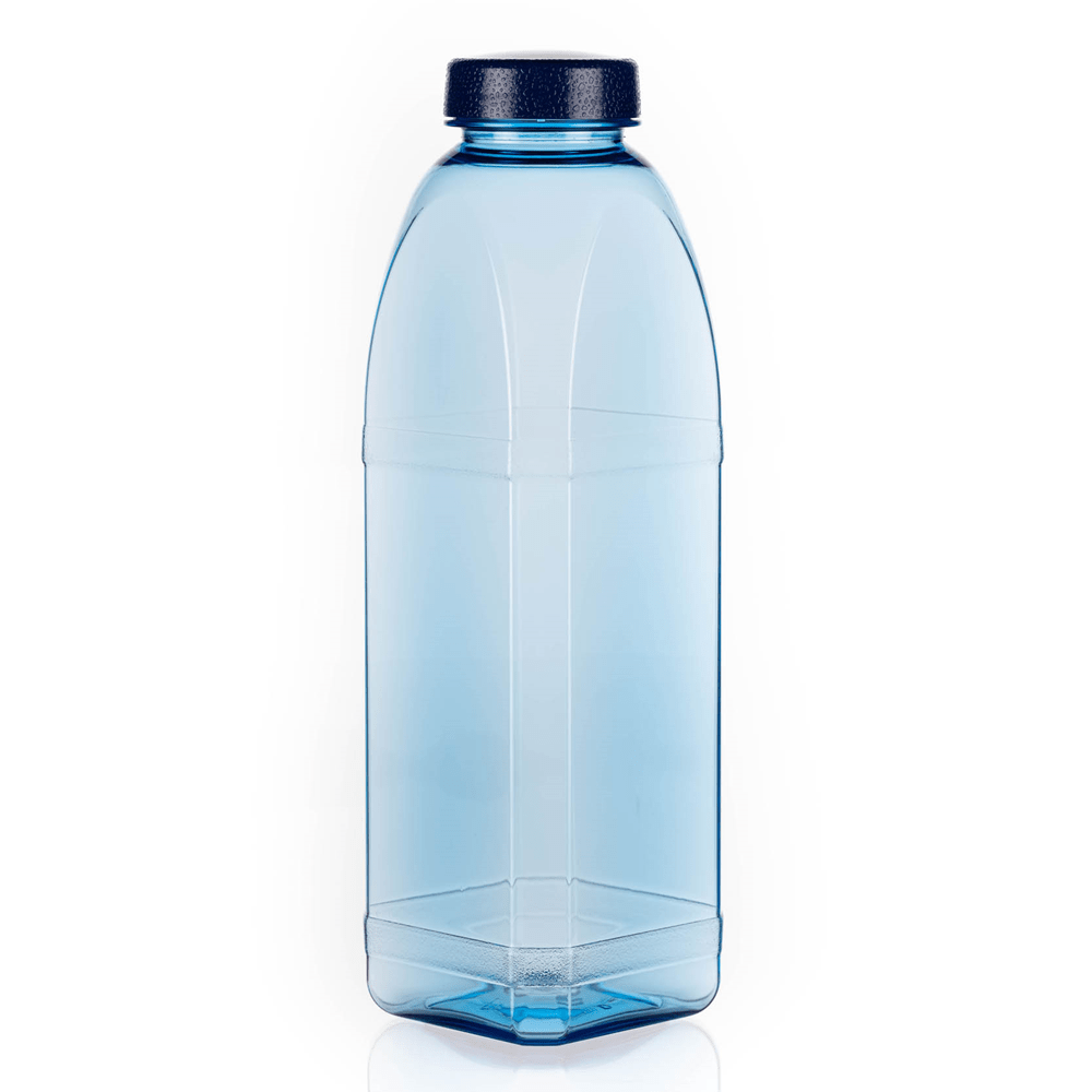 Die Tritan Trinkflaschen eckig von Kavodrink ist der Größe 1000ml und in der Farben Blau erhältlich. Die Tritan Trinkflaschen sind günstig, wiederverwendbar, lebensmittelecht ohne Weichmacher. Selbstverständlich sind diese Wasserflaschen bpa-frei und bps-frei, da sie aus Eastman Tritan™ Copolyester hergestellt sind. Sie eignen sich ideal für Osmosewasser, da sie geruchsneutral und geschmacksneutral sind. Die Flaschen sind druckdicht bis 2 bar und in mit dem zusätzlich bestellbaren Dichtungsring sind die Flaschen auch für kohlensäurehaltige Getränke geeignet. Zudem sind die Kavodrink Tritan Trinkflaschen bruchfest, druckstabil bzw. schlagzäh. Sie sind hitzebeständig und sind somit leicht zu reinigen und spülmaschinengeeignet bis 60°C. Die große Standflache gibt einen sicheren Stand. Die Flaschen haben eine hohe Transparenz und sind leicht blau eingefärbt.